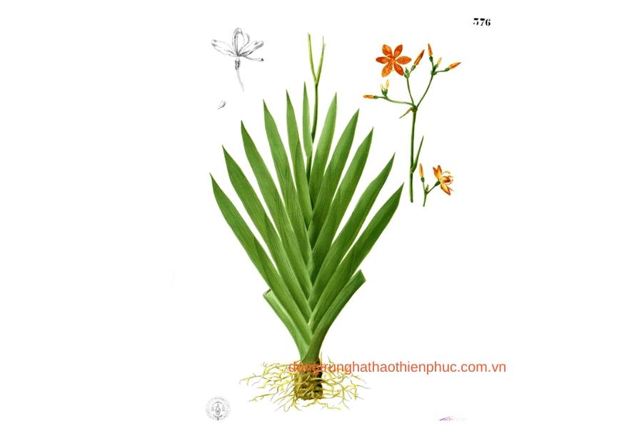 Tectoridin, irigenin, belamcandin: có tác dụng chống viêm, kháng khuẩn